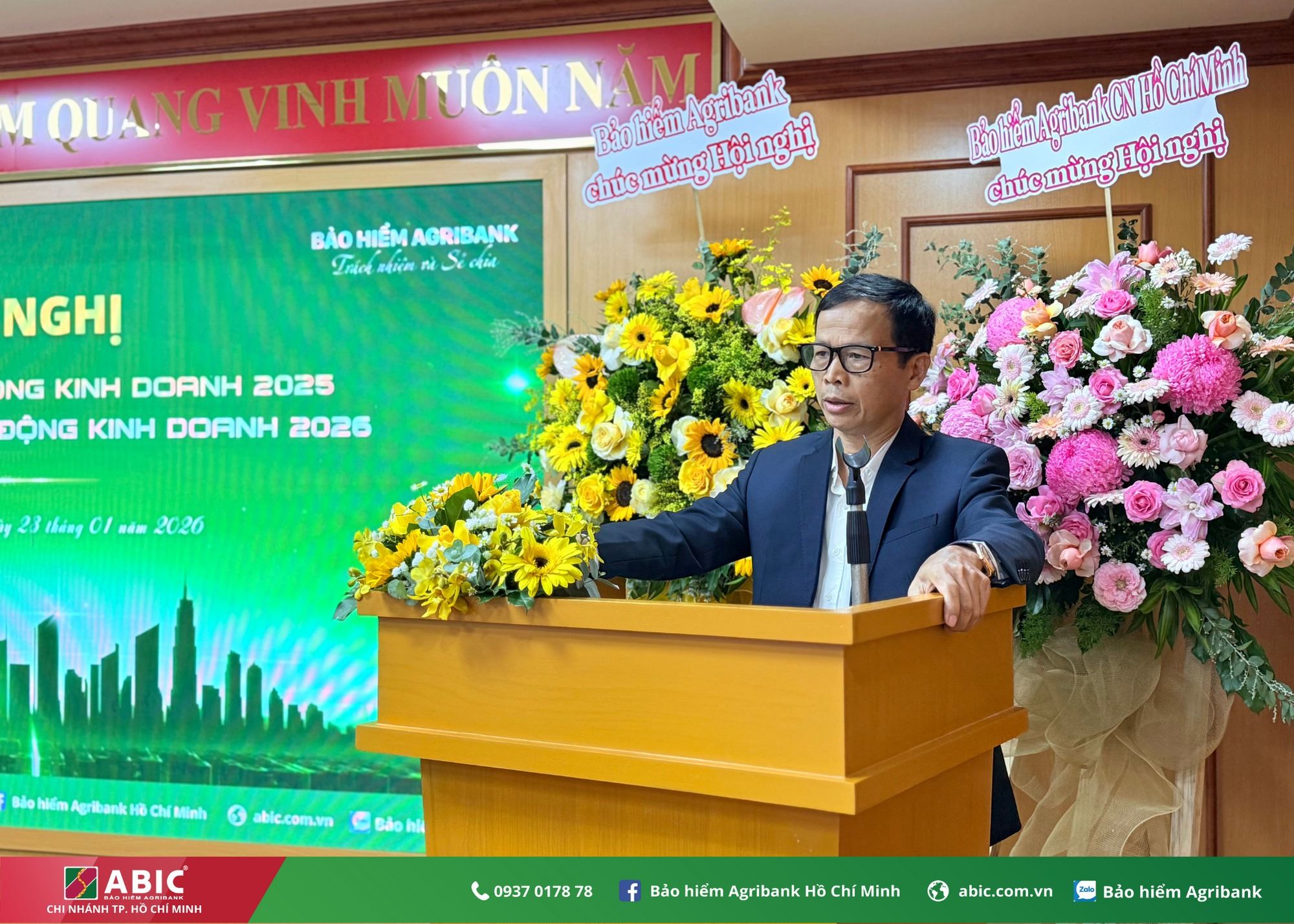 Ngày 23/01/2025, tại hội trường Chi nhánh, Bảo hiểm Agribank Chi nhánh Hồ Chí Minh đã long trọng tổ chức Hội nghị tổng kết hoạt động kinh doanh năm 2025 – triển khai nhiệm vụ năm 2026 và Hội nghị Người lao động năm 2026.