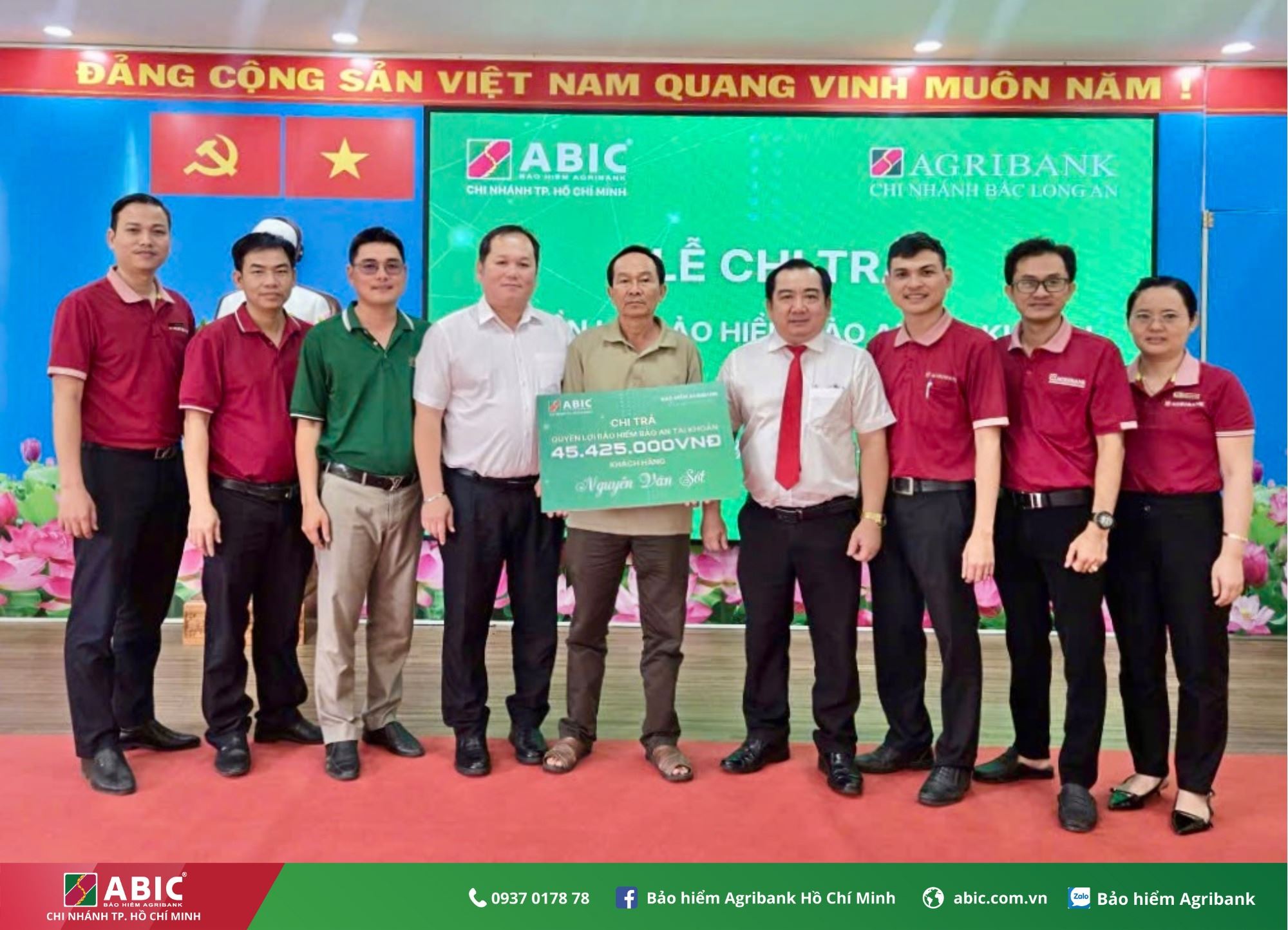 Ngày 28/11/2025, tại Agribank Chi nhánh Đức Huệ – Bắc Long An, Bảo hiểm Agribank Hồ Chí Minh đã phối hợp với Agribank CN Bắc Long An long trọng tổ chức Lễ chi trả quyền lợi bảo hiểm “Bảo an tài khoản” cho khách hàng Nguyễn Văn Sót, với số tiền 45.425.000 đồng.