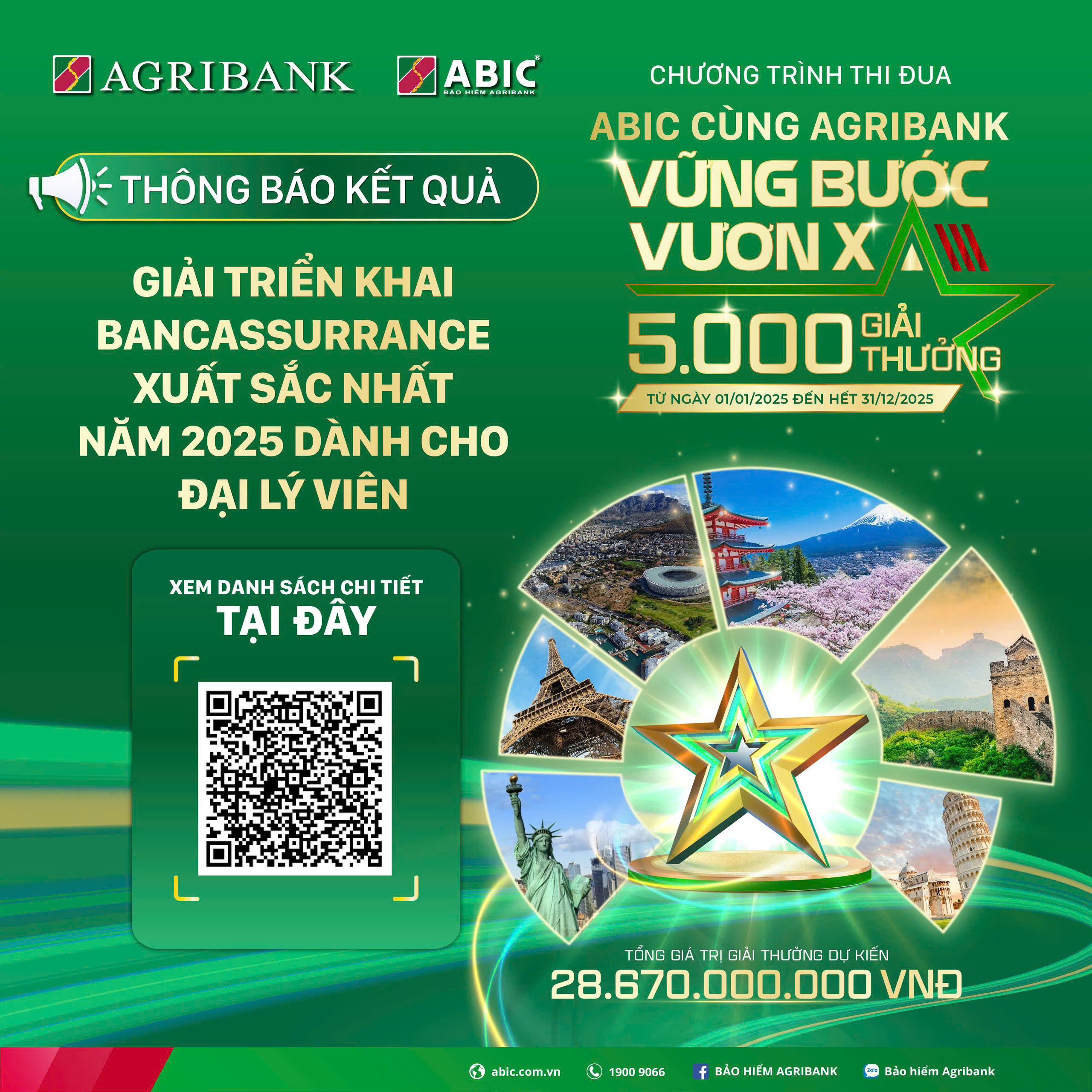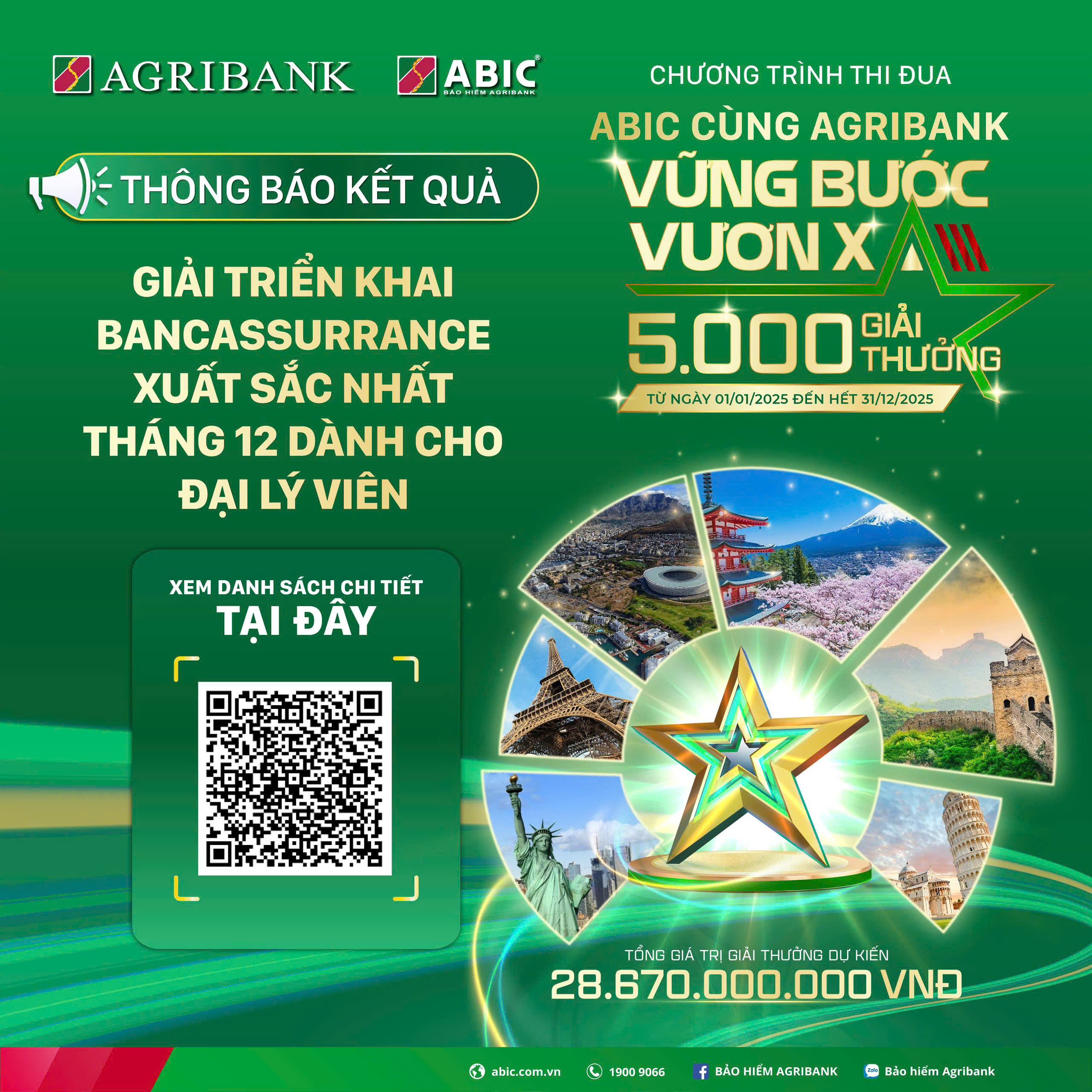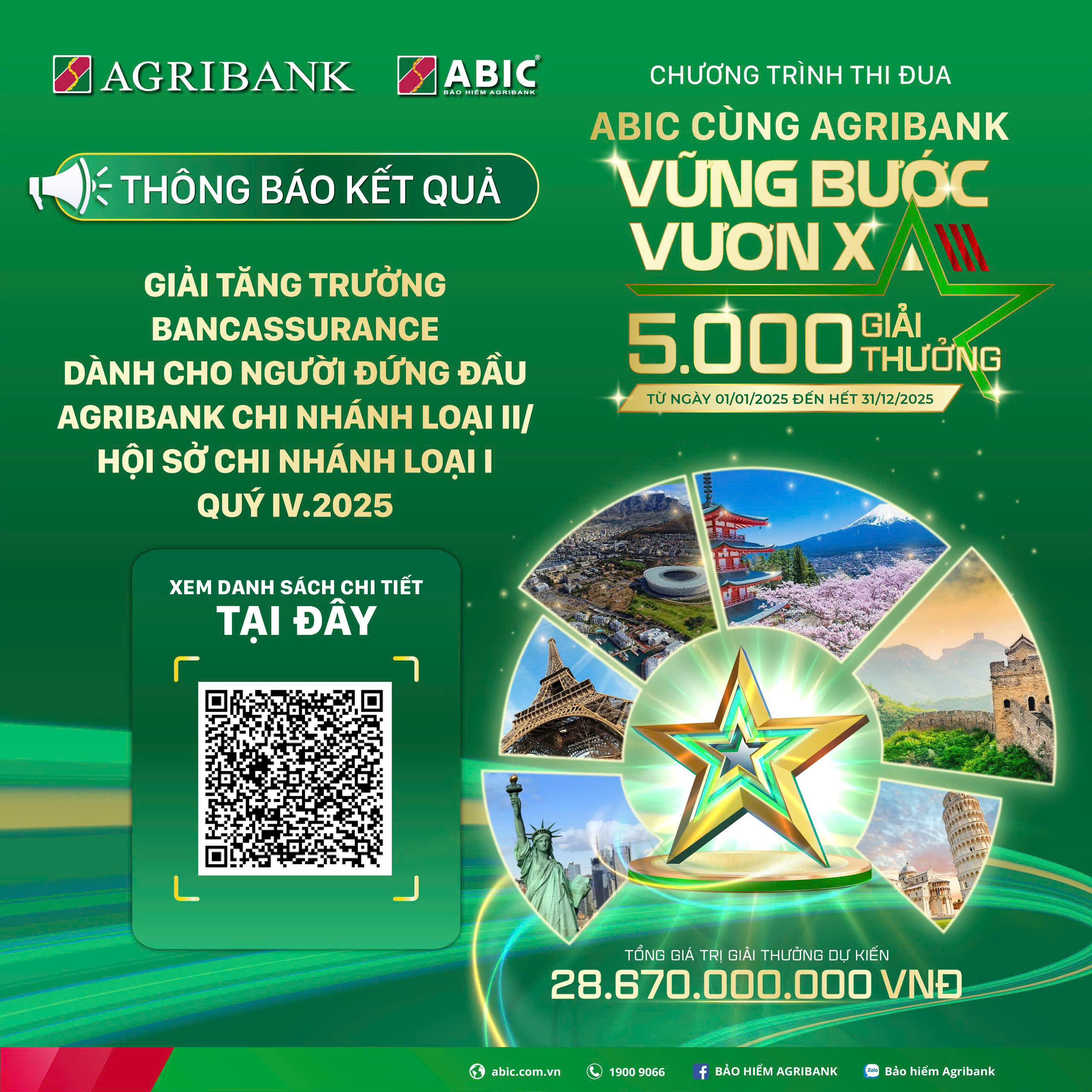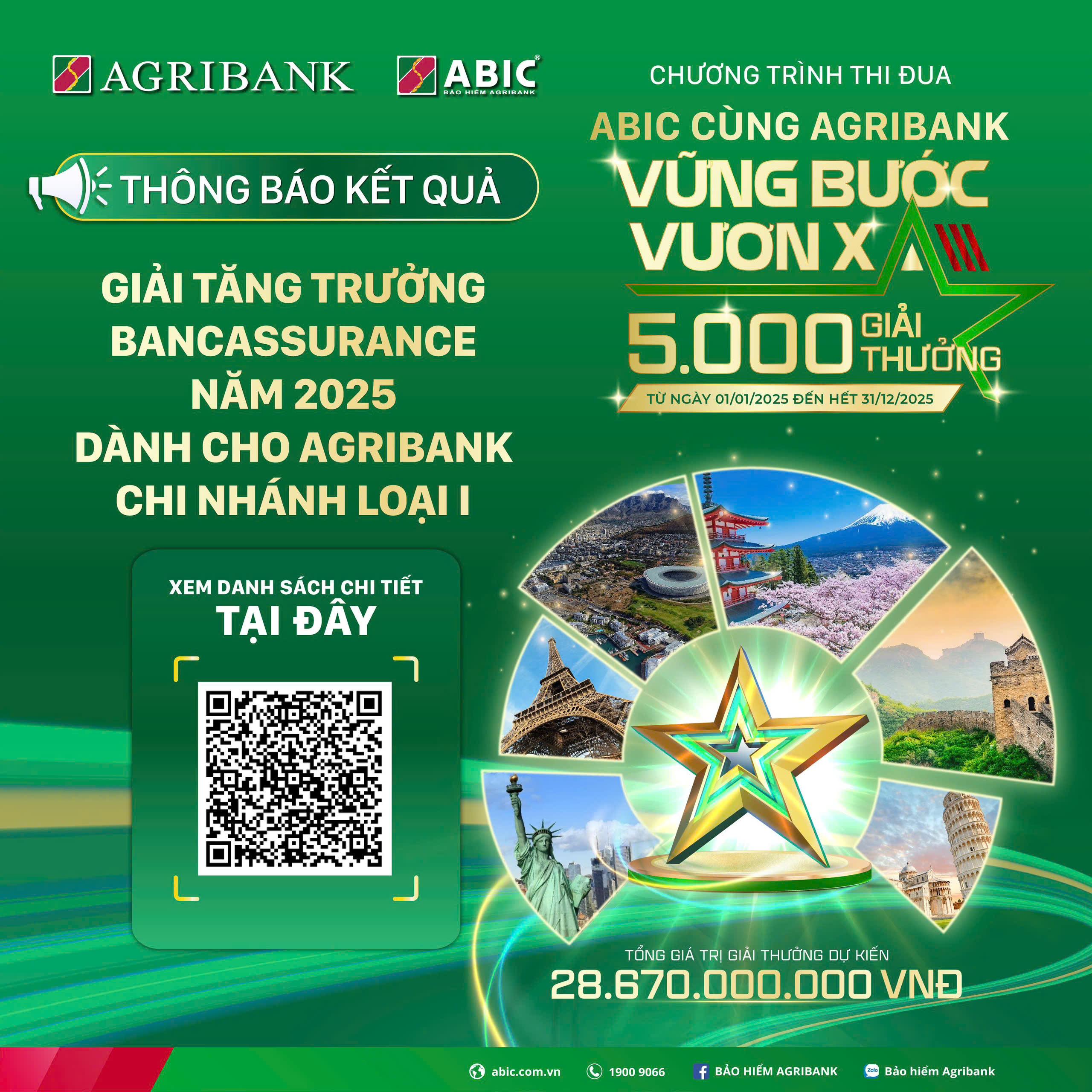 KẾT QUẢ CHƯƠNG TRÌNH THI ĐUA ABIC CÙNG AGRIBANK VỮNG BƯỚC VƯƠN XA
