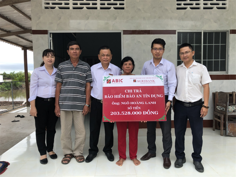 Ông Ngô Hoàng Lanh vay vốn tại Agribank CN Thị xã Duyên Hải Trà Vinh và tham gia bảo hiểm Bảo an tín dụng với số tiền bảo hiểm 200 triệu đồng, không may, ông Lanh bị tai nạn giao thông và qua đời. Nhận được tin, ABIC Cần Thơ và Agribank CN Thị xã Duyên Hải đã đến thăm hỏi và tiến hành chi trả quyền lợi bảo hiểm cho gia đình của ông Ngô Hoàng Lanh với tổng số tiền 203.528.000 triệu đồng, trong đó quyền lợi bảo hiểm chính là 200 triệu đồng, chi hỗ trợ mai táng phí 1 triệu đồng và hỗ trợ lãi tiền vay 2.528.000 đồng.
