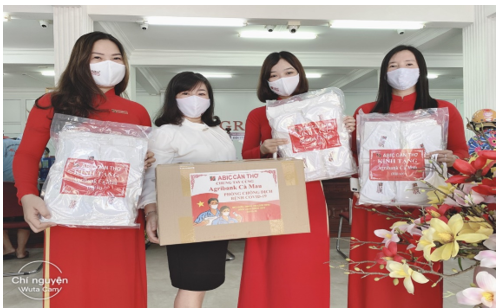Nhằm bảo vệ sức khỏe cho cộng đồng và chung tay cùng Agribank đẩy lùi dịch bệnh Covid-19. Ngày 18/03 và những ngày đầu tháng 4/2020 ABIC Cần Thơ đã triển khai trao tặng 312 lít dung dịch rửa tay sát khuẩn và hơn 10.000 chiếc khẩu trang kháng khuẩn cho 13 Tổng đại lý Agribank trên địa bàn Miền Tây Nam bộ phụ trách, góp phần bảo vệ sức khỏe cho CBNV Agribank vững tâm công tác trong giai đoạn diễn biến dịch phức tạp thời gian qua.