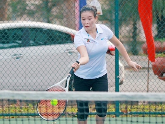 Hạ Trang (Hội Sở) cây vợt nữ duy nhất của giải giành hạng ba chung cuộc môn quần vợt.