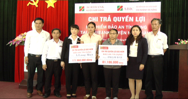 Sáng ngày 29.6, công ty Cổ phần Bảo hiểm Ngân hàng Nông nghiệp ABIC chi nhánh Đà nẵng phối hợp với chi nhánh Ngân hàng Agribank huyện Nam Giang tổ chức chi trả quyền lợi cho thân nhân khách hàng tham gia sản phẩm bảo hiểm Bảo An tín dụng không may gặp rủi ro.