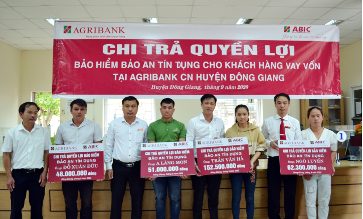 Sáng 17.9, Công ty CP Bảo hiểm Ngân hàng Nông nghiệp chi nhánh Đà Nẵng (ABIC Đà Nẵng) phối hợp với Agribank chi nhánh Quảng Nam tổ chức chi trả quyền lợi bảo hiểm BATD đến gia đình 4 khách hàng trên địa bàn huyện Đông Giang, gồm: ông Đỗ Xuân Đức (xã Tà Lu) 46 triệu đồng, ông Trần Văn Hà (xã Ba) hơn 150 triệu đồng, ông Ngô Luyến (xã Zơ Ngây) hơn 62 triệu đồng và ông Alăng Mon (xã Sông Kôn) 51 triệu đồng.