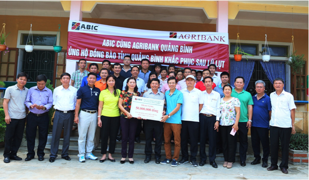 Phát huy truyền thống "tương thân tương ái, lá lành đùm lá rách", Đảng Bộ, Công đoàn, Đoàn thanh niên, Ban lãnh đạo và toàn thể CBNV Công ty cổ phần Bảo Hiểm Ngân hàng Nông nghiệp đã nhiệt tình tham gia quyên góp ủng hộ đồng bào miền Trung vùng gặp thiên tai lũ lụt từ ngày 20 -21/10, số tiền quyên góp ủng hộ trong 02 ngày được 100 triệu đồng.