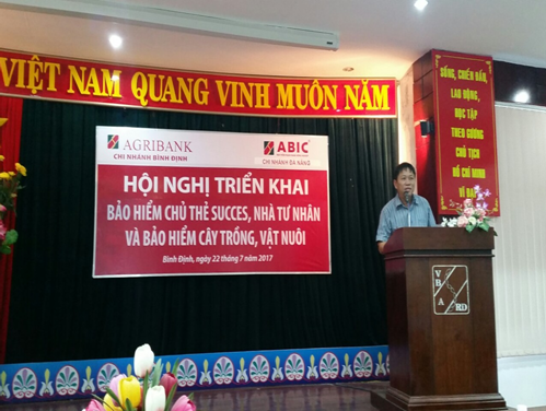 Ngày 22/07/2017 vừa qua, Công ty Cổ phần Bảo hiểm Ngân hàng Nông nghiệp - Chi nhánh Đà Nẵng (ABIC Đà Nẵng) đã phối hợp với Tổng đại lý- Chi nhánh Agribank tỉnh Bình Định tổ chức thành công buổi tập huấn và triển khai sản phẩm bảo hiểm mới nhằm đa dạng hóa sản phẩm, đáp ứng được nhu cầu tham gia bảo hiểm của khách hàng Agribank trên địa bàn trong thời gian tới.