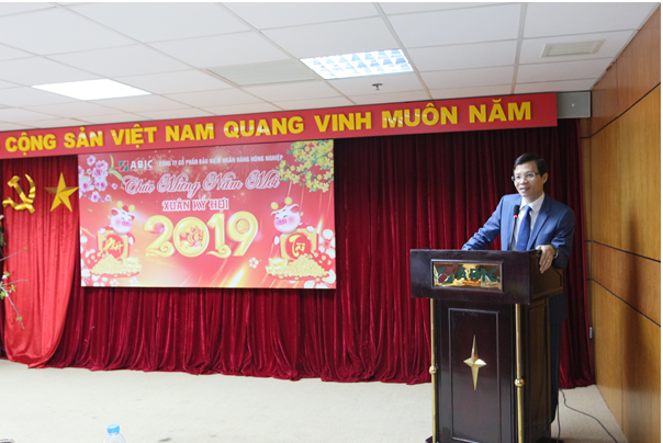 Phát biểu khai xuân, thay mặt cho Ban lãnh đạo Công ty, Ông Đinh Việt Đông - Bí thư Đảng bộ - Chủ tịch HĐQT đã gửi lời chúc tốt đẹp nhất tới gia đình và toàn thể CBNV, cảm ơn sự nỗ lực của CBNV đã hoàn thành xuất sắc nhiệm vụ trong năm 2018 và mong muốn CBNV ABIC tiếp tục đoàn kết, nỗ lực hơn nữa để phấn đấu hoàn thành xuất sắc nhiệm vụ được giao trong năm Kỷ Hợi 2019.