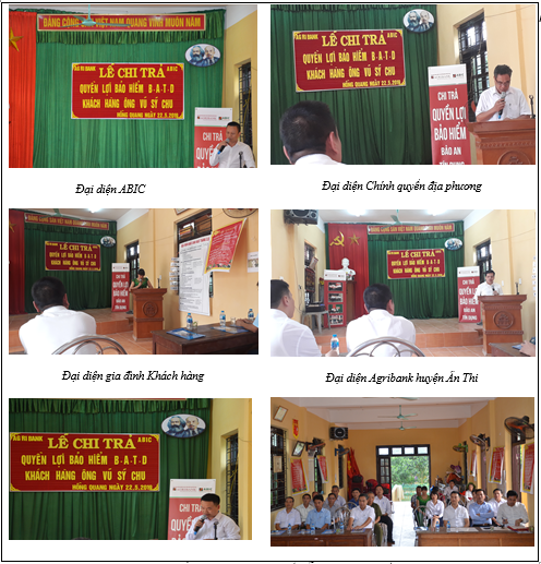 Tổng số tiền ABIC Hà Nội chi trả cho trường hợp Ông Vũ Sỹ Chu là 141,666 triệu đồng bao gồm: quyền lợi bảo hiểm cơ bản 140 triệu đồng, hỗ trợ lãi tiền vay 666.000 nghìn đồng và trợ cấp mai táng phí 1 triệu đồng gửi cho gia đình ông Chu. Số tiền 141,666 triệu đồng, ABIC đã chuyển cho Agribank chi nhánh huyện Ân Thi 100,666 triệu đồng để khấu trừ vào khoản vay tại ngân hàng, còn 41 triệu đồng ABIC đã chuyển cho gia đình Ông Vũ Sỹ Chu nhận bằng tiền mặt.