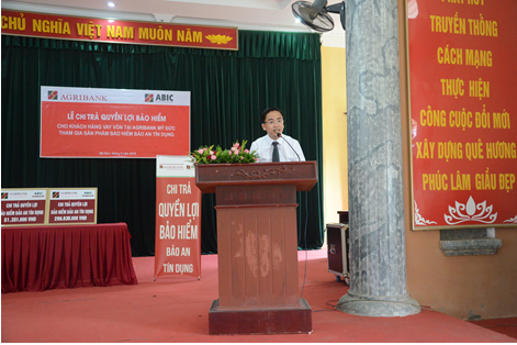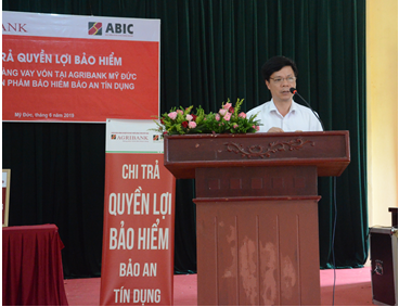 Ngày 11/06/2019, Công ty Cổ phần Bảo hiểm Ngân hàng nông nghiệp (ABIC) Chi nhánh Hà Nội phối hợp với Agribank chi nhánh huyện Mỹ Đức-Hà Tây cùng chính quyền địa phương 2 xã Phúc Lâm và Đồng Tâm ( Mỹ Đức – Hà Tây) đã trao biểu trưng chi trả quyền lợi bảo hiểm bảo an tín dụng cho 02 gia đình, đại diện là ông Nguyễn Mạnh Cường tại Đồng Tâm, Mỹ Đức và gia đình ông Nguyễn Văn Ba tại Khảm Lâm, Phúc Lâm, Mỹ Đức, Hà Tây, Hà Nội.