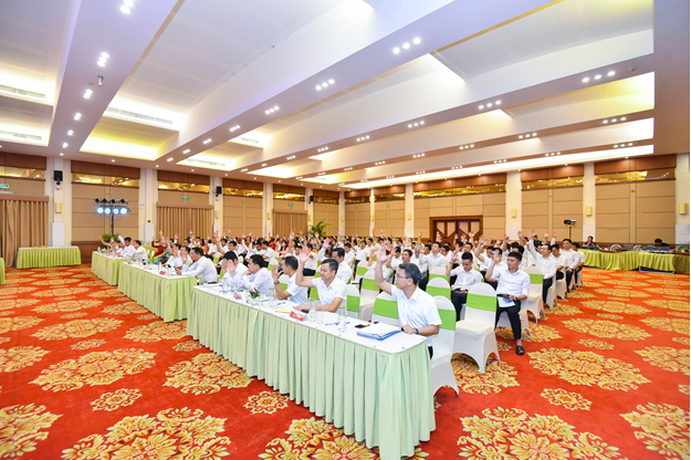 Đại biểu tham gia biểu quyết tại hội nghị