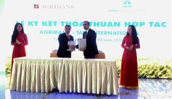 Triển khai nội dung tại Biên bản ghi nhớ đã được ký kết ở New Delhi vào tháng 3/2018, ngày 01 tháng 8 năm 2018, tại thành phố Cần Thơ, Ngân hàng Nông nghiệp và Phát triển Nông thôn Việt Nam (Agribank) và Công ty TNHH Tata International Việt Nam tiến hành Lễ ký kết thỏa thuận hợp tác với mong muốn cung cấp một giải pháp đồng bộ, chất lượng trong lĩnh vực nông nghiệp công nghệ cao cho các nông dân, hợp tác xã và trang trại thông qua các gói hỗ trợ tài chính, bảo hiểm từ Agribank. Buổi lễ có sự tham dự và chứng kiến của Đại sứ quán Ấn Độ tại Việt Nam; Lãnh đạo cấp cao của tập đoàn TATA, của Agribank và ABIC.