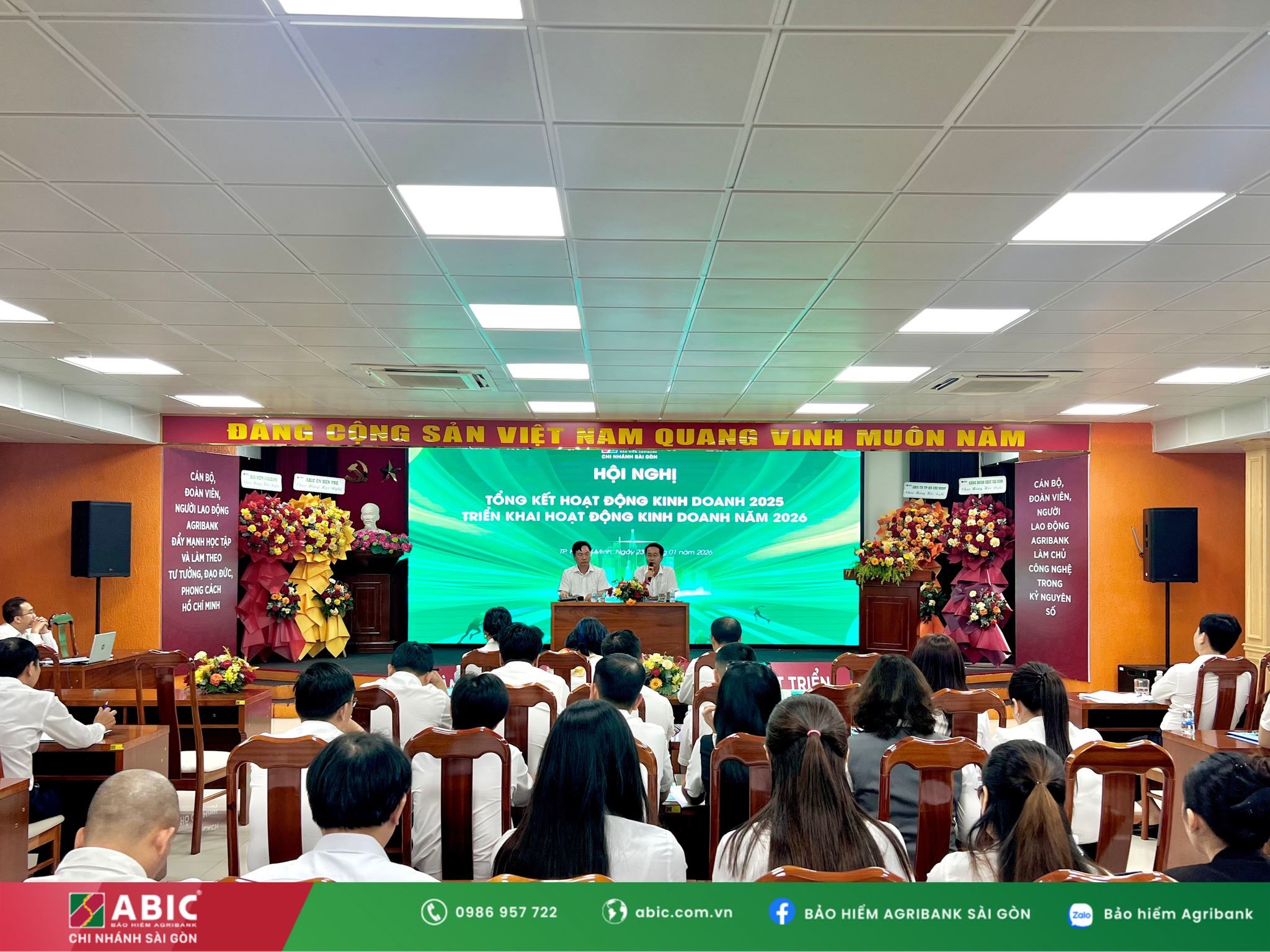 Ngày 23/01/2026, Bảo hiểm Agribank Chi nhánh Sài Gòn đã long trọng tổ chức Hội nghị tổng kết hoạt động kinh doanh năm 2025, triển khai hoạt động kinh doanh năm 2026 và Hội nghị Người lao động năm 2026.