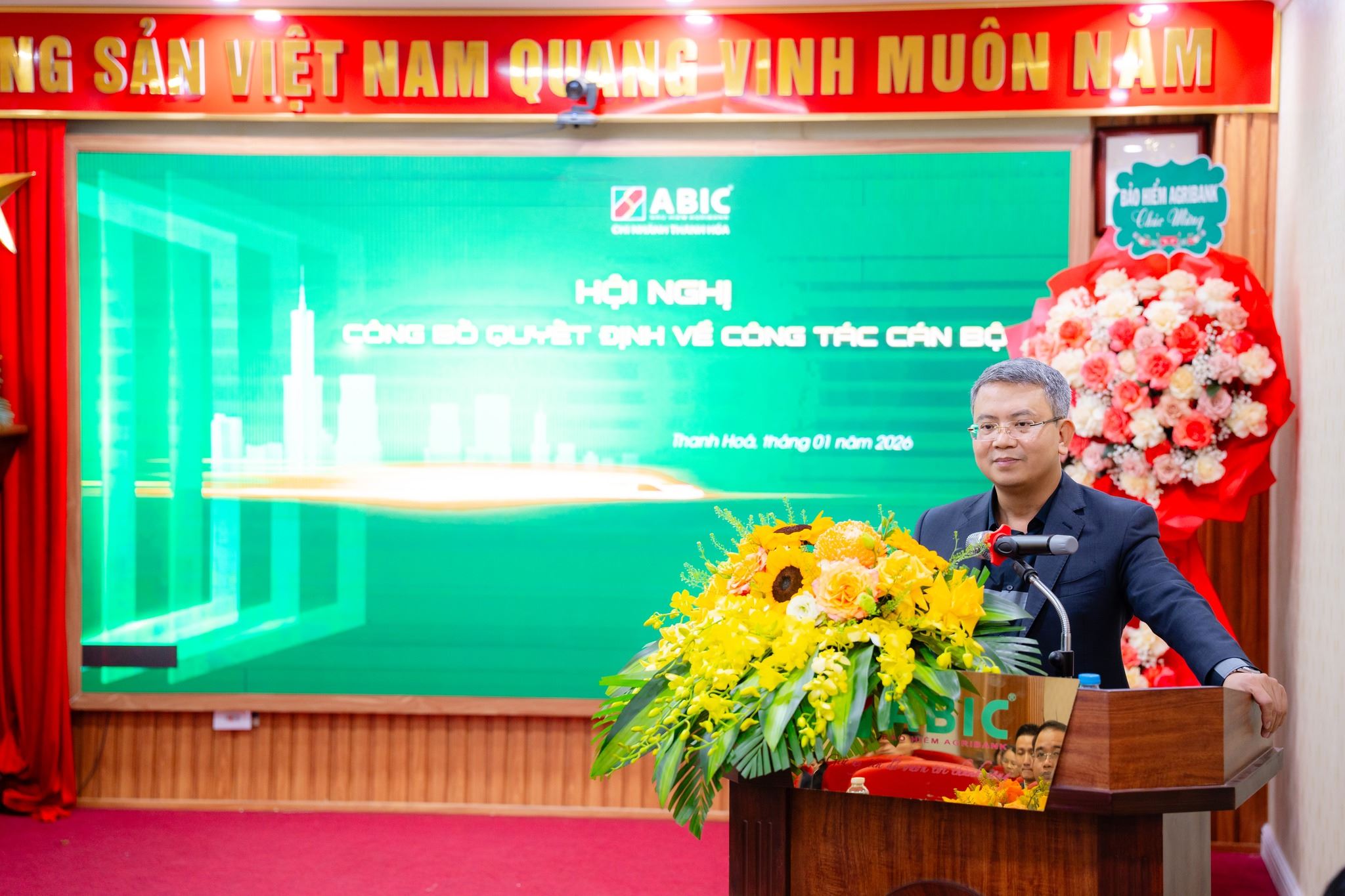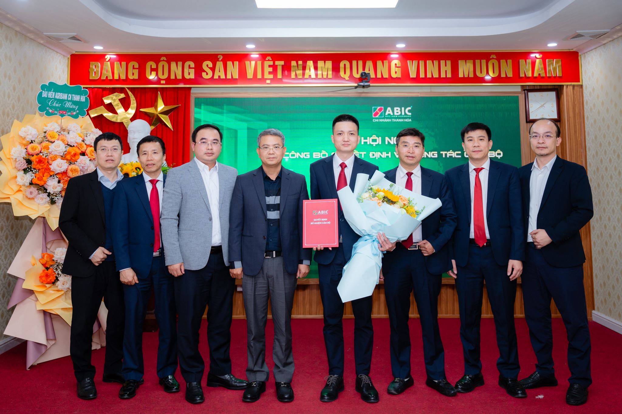 Bảo hiểm Agribank (ABIC) Chi nhánh Thanh Hóa vừa tổ chức Hội nghị công bố Quyết định công tác cán bộ, nhằm kiện toàn bộ máy lãnh đạo, đáp ứng yêu cầu nhiệm vụ trong giai đoạn phát triển mới. Tham dự Hội nghị có Đoàn công tác của Bảo hiểm Agribank do ông Nguyễn Hồng Thái – Ủy viên Ban Chấp hành Đảng bộ, Tổng Giám đốc Bảo hiểm Agribank làm Trưởng đoàn, cùng các đồng chí là lãnh đạo các Ban chuyên môn tại Trụ sở chính.