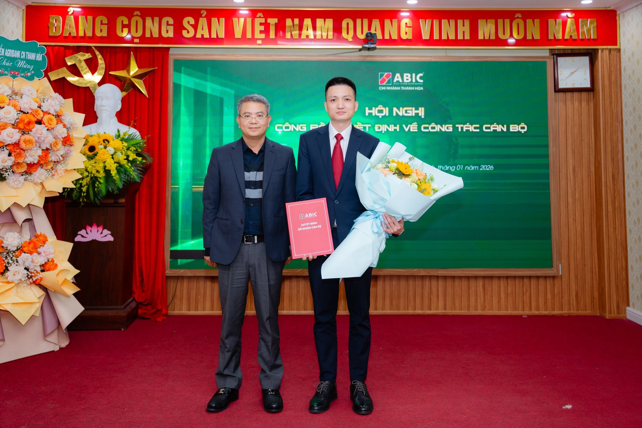Tại Hội nghị, đại diện Bảo hiểm Agribank đã công bố Quyết định bổ nhiệm ông Tạ Nguyên Vương – Trưởng Phòng Quản lý Nghiệp vụ giữ chức vụ Phó Giám đốc Bảo hiểm Agribank Chi nhánh Thanh Hóa, kể từ ngày 01/01/2026.
