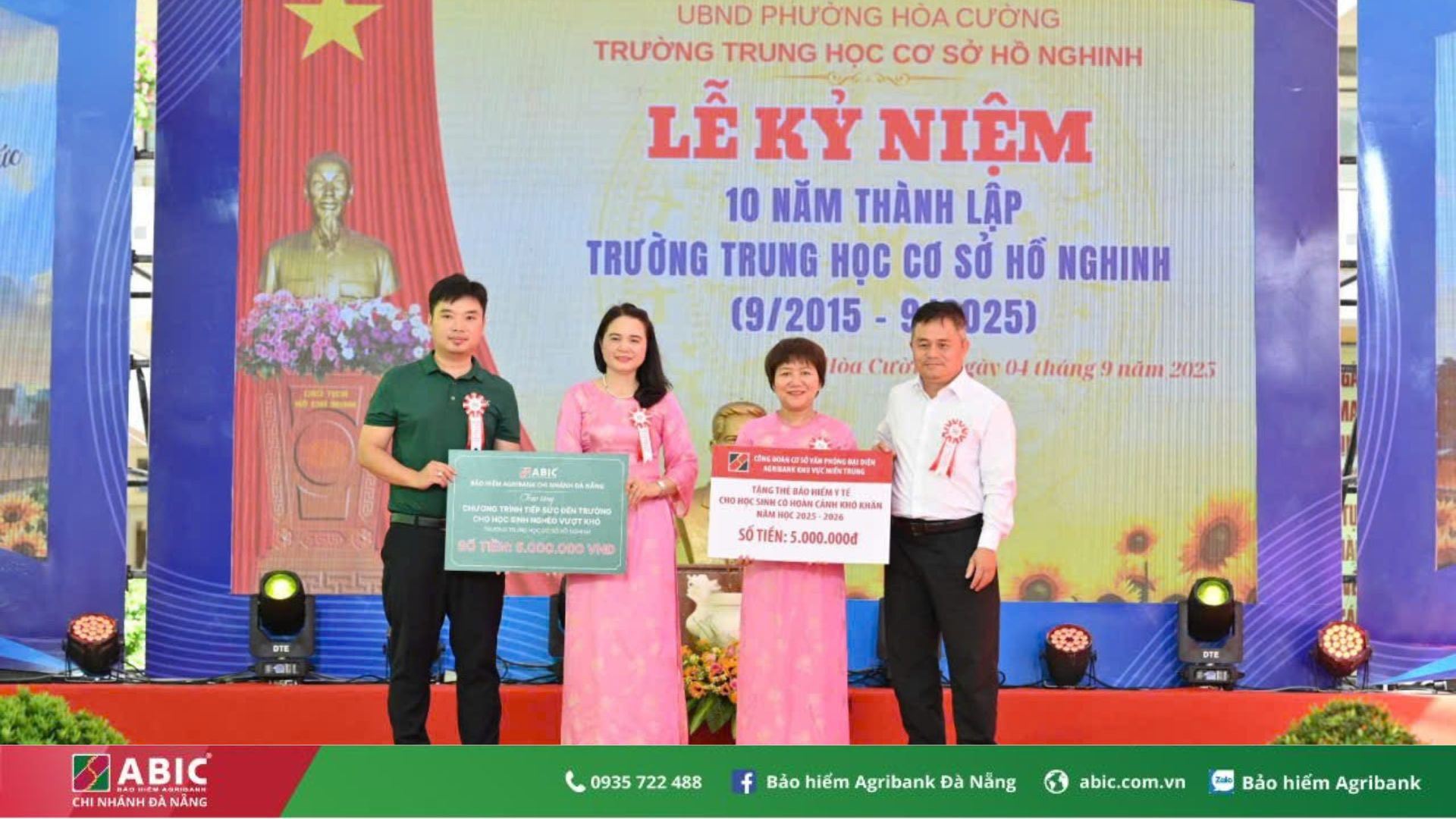 Trước đó, Bảo hiểm Agribank Đà Nẵng cũng phối hợp với Trường THCS Hồ Nghinh trao chương trình “Tiếp sức đến trường” dành cho học sinh nghèo vượt khó với số tiền hỗ trợ 5.000.000 đồng.