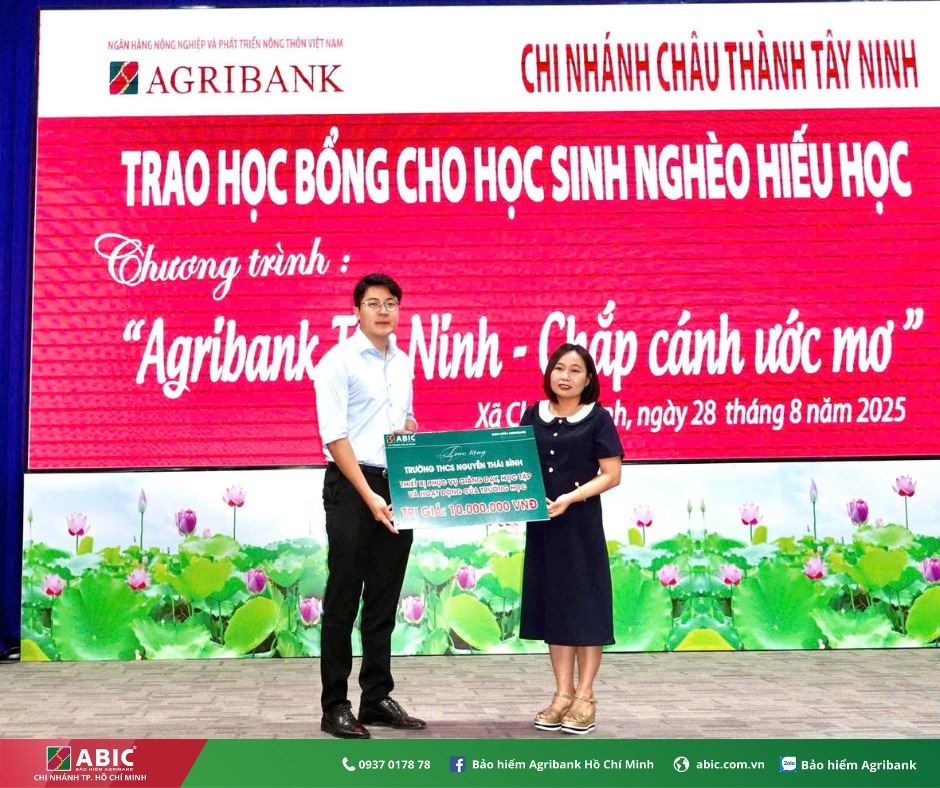 Trong chuỗi hoạt động vì cộng đồng và đồng hành cùng sự nghiệp giáo dục năm học 2025 – 2026, Bảo hiểm Agribank Hồ Chí Minh đã phối hợp với các điểm trường trên địa bàn tỉnh Tây Ninh tổ chức chương trình trao tặng an sinh xã hội cho học sinh và nhà trường.