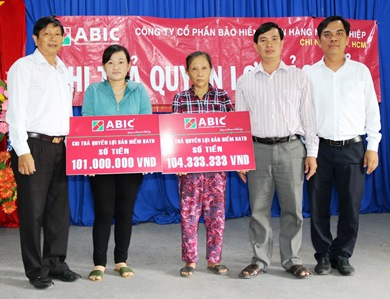 Cụ thể, ABIC - TP.HCM đã chi trả quyền lợi bảo hiểm với số tiền 124.332.000 đồng cho thân nhân gia đình ông Nguyễn Văn Dữa. Được biết, ông Nguyễn Văn Dữa cư ngụ ở ấp 2 xã Tam Hiệp - Bình Đại - Bến Tre có quan hệ vay vốn tại Phòng Giao dịch Châu Hưng - Agribank huyện Bình Đại để sử dụng cho phương án sản xuất kinh doanh của gia đình. Trong quá trình vay vốn, khách hàng quan tâm đến sản phẩm bảo hiểm Bảo an Tín dụng (BATD) và đã được nhân viên ngân hàng tận tình giải thích đầy đủ về điều kiện tham gia, về phí bảo hiểm đặc biệt là về quyền lợi khách hàng nhận được khi tham gia sản phẩm bảo hiểm này nên ông đã tự nguyện tham gia với mức trách nhiệm do khách hàng lựa chọn phù hợp với khả năng trả phí bảo hiểm và số tiền vay vốn. Sau đó, không may khách hàng trên bị tai nạn đột ngột qua đời. Ngay khi nhận được thông báo từ các gia đình khách hàng, đại diện Agribank chi nhánh Thạnh Phú đến trực tiếp động viên thăm hỏi, phối hợp với ABIC - TP.HCM đã nhanh chóng thực hiện các thủ tục, hồ sơ chi trả bồi thường 100% theo mức trách nhiệm đã tham gia. Ngoài ra, ABIC còn trợ cấp lãi một phần lãi vay từ thời điểm trả lãi lần cuối đến khi được chi trả đền bù và hỗ trợ thêm gia đình 1 triệu đồng tiền mai táng phí.