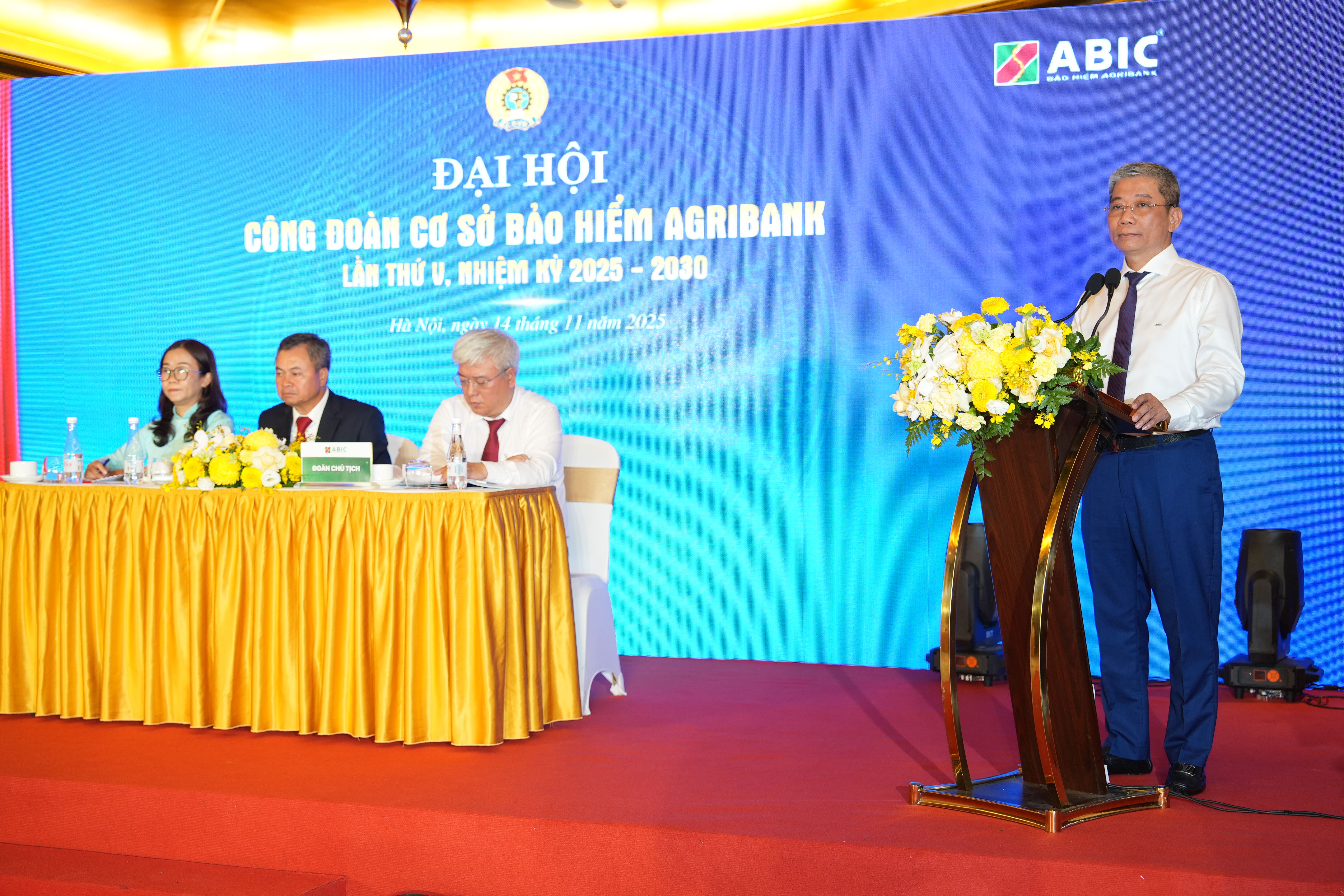 Phát biểu tại Đại hội, đồng chí Nguyễn Tiến Hải – Bí thư Đảng ủy, Chủ tịch Hội đồng quản trị Bảo hiểm Agribank đánh giá cao vai trò của Công đoàn trong việc ổn định tư tưởng và đồng hành cùng sự phát triển của Công ty. Ông nhấn mạnh: “Công đoàn Bảo hiểm Agribank đã khẳng định vai trò là cầu nối tin cậy giữa người lao động và lãnh đạo. Trong nhiệm kỳ vừa qua Bảo hiểm Agribank đã phải đương đầu với rất nhiều khó khăn thách thức như thiên tai, ảnh hưởng của thị trường, của chính sách… khiến thu nhập của người lao động bị giảm sút. Tôi mong nhiệm kỳ tới, Công đoàn tiếp tục đổi mới hoạt động, tăng cường đào tạo, đồng hành cùng chiến lược chuyển đổi số và phát triển của Bảo hiểm Agribank, đặc biệt trong việc chăm lo tốt hơn cho người lao động – lực lượng nền tảng của sự phát triển.”