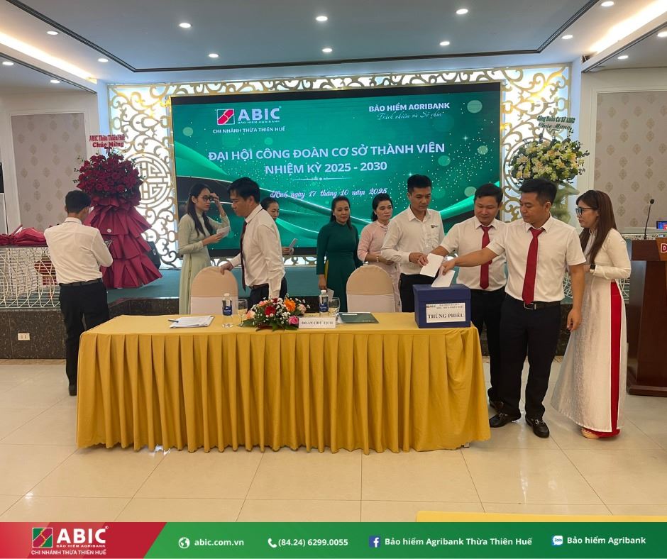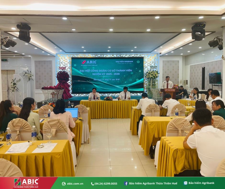 Ngày 17/10/2025, Công đoàn cơ sở thành viên Bảo hiểm Agribank Chi nhánh Thừa Thiên Huế đã long trọng tổ chức Đại hội Công đoàn cơ sở nhiệm kỳ 2025–2030. Đây là sự kiện chính trị quan trọng, đánh dấu bước phát triển mới trong công tác công đoàn, thể hiện tinh thần đoàn kết, dân chủ và trách nhiệm của tập thể đoàn viên, người lao động trong đơn vị.