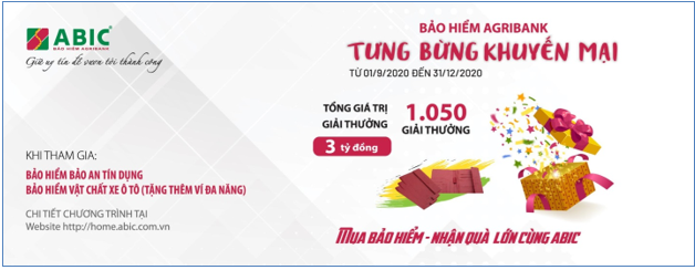 Cụ thể, từ ngày 01/9/2020 đến 31/12/2020, các khách hàng tham gia mua bảo hiểm Bảo an tín dụng và bảo hiểm vật chất xe ô tô của Bảo hiểm Agribank sẽ có cơ hội nhận được mã dự thưởng để tham gia chương trình quay số trúng 1.050 giải thưởng với tổng giá trị lên đến 3 tỷ đồng, cụ thể: