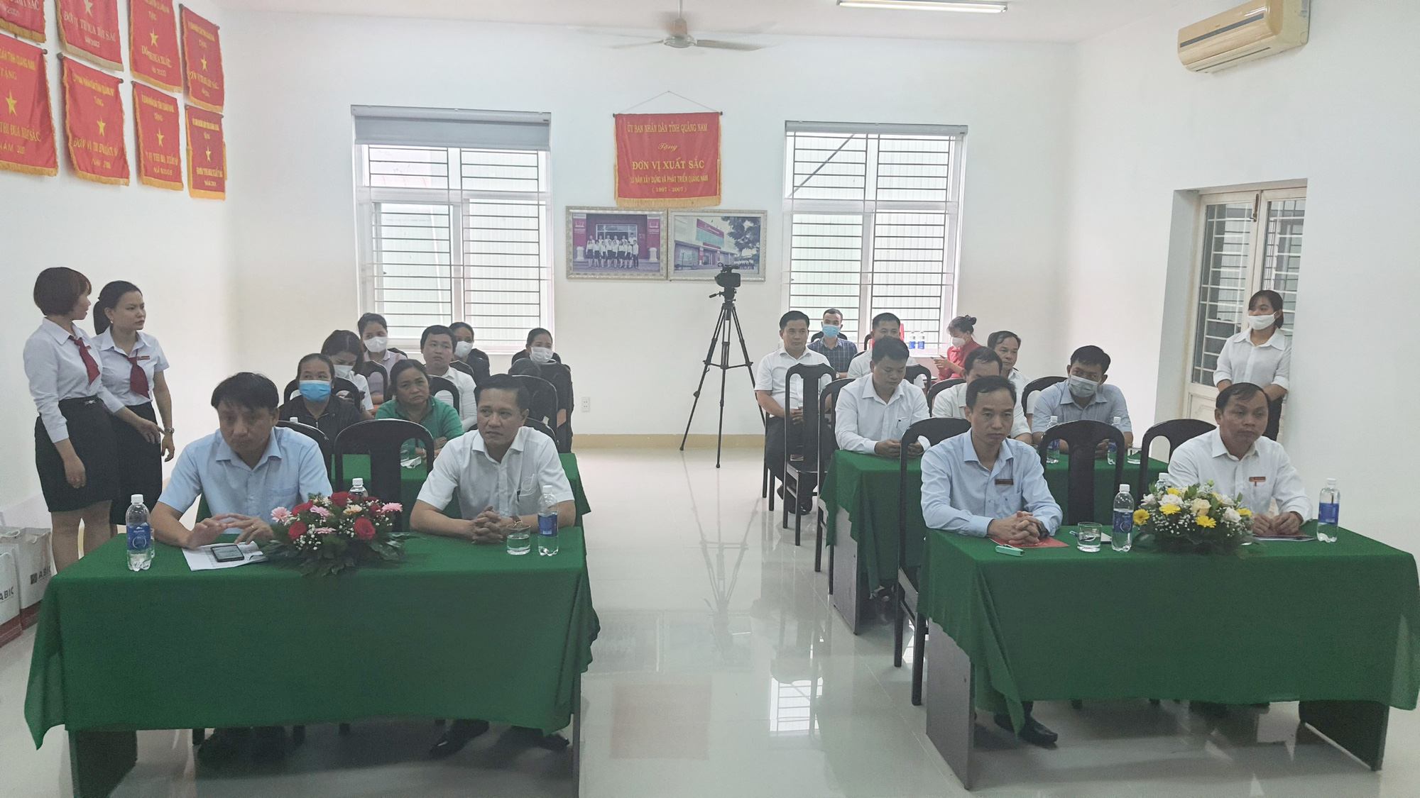 Các đại biểu tham dự buổi chi trả quyền lợi bảo hiểm Bảo an tín dụng. Ảnh: Trần Hậu.