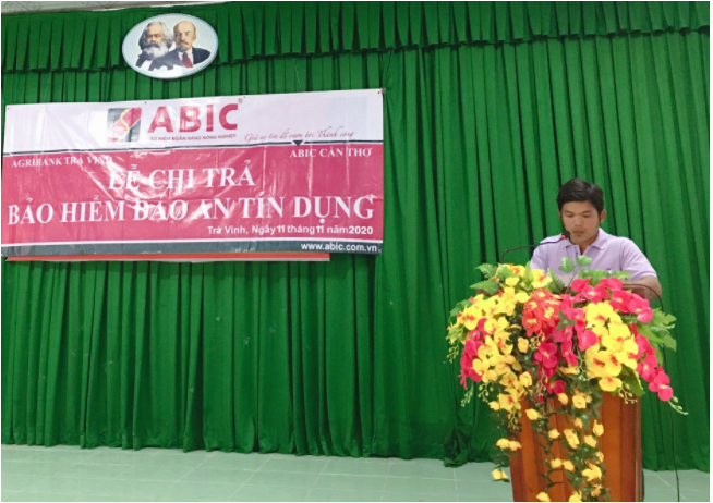 Ngày 11/11, tại xã Lưu Nghiệp Anh, huyện Trà Cú, tỉnh Trà Vinh, Công ty Cổ phần bảo hiểm Ngân hàng Nông nghiệp chi nhánh Cần Thơ (ABIC Cần Thơ) tổ chức Lễ chi trả Bảo hiểm Bảo an tín dụng cho gia đình ông Nguyễn Văn Thi, là khách hàng vay vốn tại Agribank Chi nhánh huyện Trà Cú.